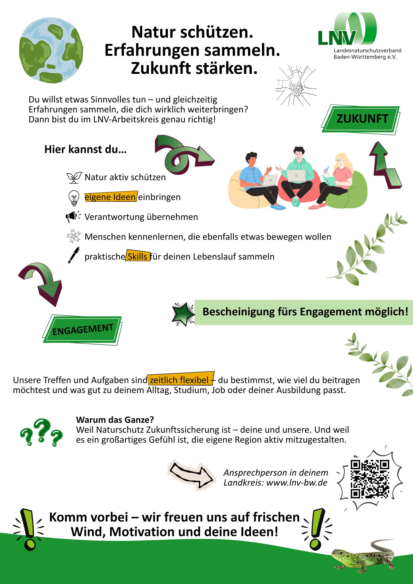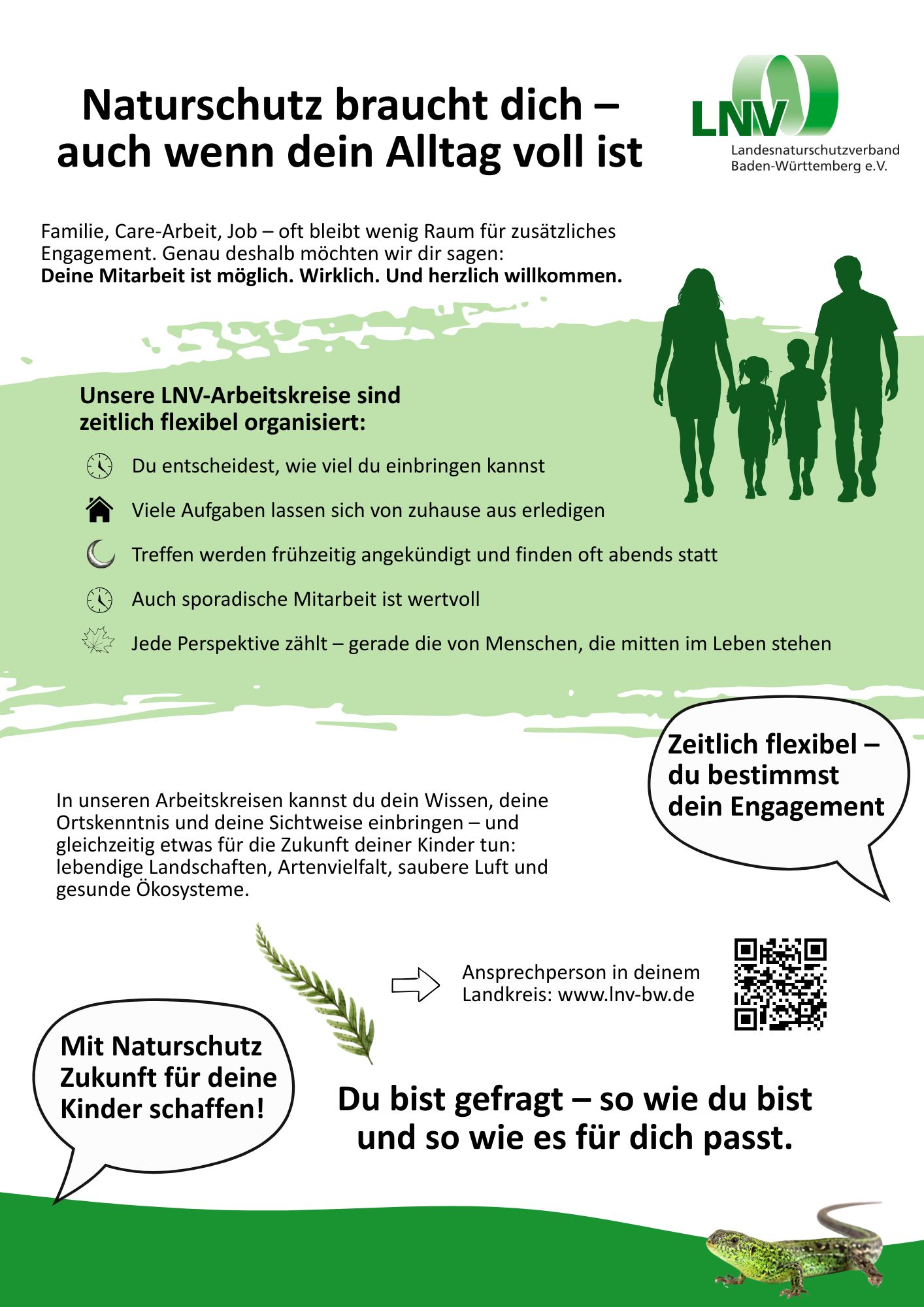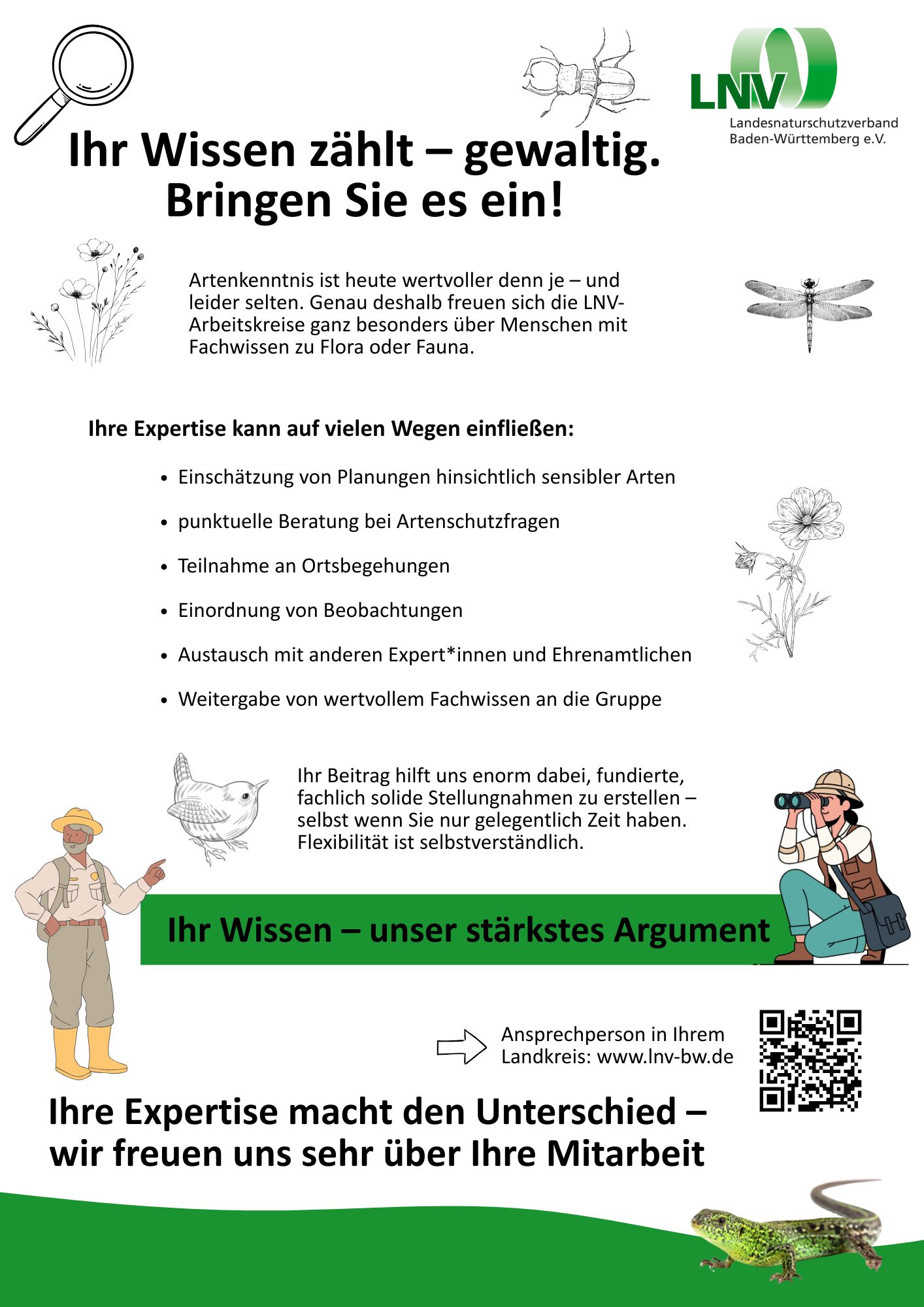LNV-Plakate zum Ausdrucken Hier finden Sie Plakate zum Ausdrucken und Aufhängen rund um den LNV und für die Mitgliedersuche für Ihren LNV-Arbeitskreis. LNV-Info-PlakatHerunterladen Plakat Tag der Artenvielfalt 2026Herunterladen Plakat Stein – VeranstaltungenHerunterladen Plakat für LNV-AK-InteressierteHerunterladen Mögliche Aufgaben im LNV-ArbeitskreisHerunterladen Komm in den LNV-Arbeitskreis – Zielgruppe junge Menschen z.B. StudierendeHerunterladen Komm in den LNV-Arbeitskreis – Zielgruppe ElternHerunterladen Komm in den LNV-Arbeitskreis – Zielgruppe RenteHerunterladen Komm in den LNV-Arbeitskreis – Zielgruppe Art-ExpertenHerunterladen Plakat LNV-StiftungHerunterladen Infoflyer für LNV-AK-InteressierteHerunterladen